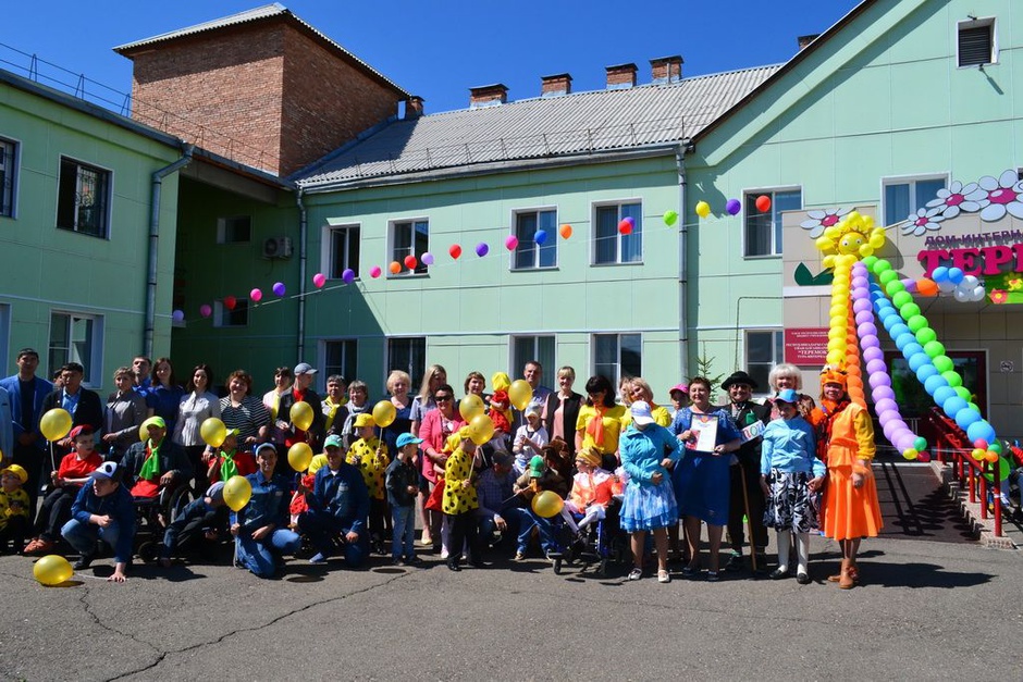 02 июня 2017 1 июня в доме-интернате прошел фестиваль творчества «Мир без границ» в рамках проекта РУСАЛа, посвященный Международному Дню защиты детей. Наши воспитанники на паровозике отправились в чудесное путешествие по стране Детства. Сказочные герои лиса Алиса и кот Базилио проводили смешные конкурсы, загадывали загадки, пели. Ребята с удовольствием танцевали, играли, читали стихи.