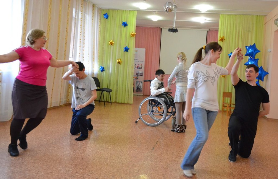 10 апреля 2017 С 30 марта каждый четверг в доме-интернате проходят занятия с инклюзивным танцевальным коллективом Dance – Club «INKLUSIV» по разным направлениям: спортивные бальные танцы, танцы на колясках, танцы с элементами классического, народного и эстрадного танца. Занятия с детьми проводят в рамках Проекта «Танец как вторая жизнь» волонтеры: танцевальный коллектив «Забава» МБОУ «СОШ №24», студенты музыкального колледжа и хореографы-постановщики Суркова Надежда и Колбасов Иван.
