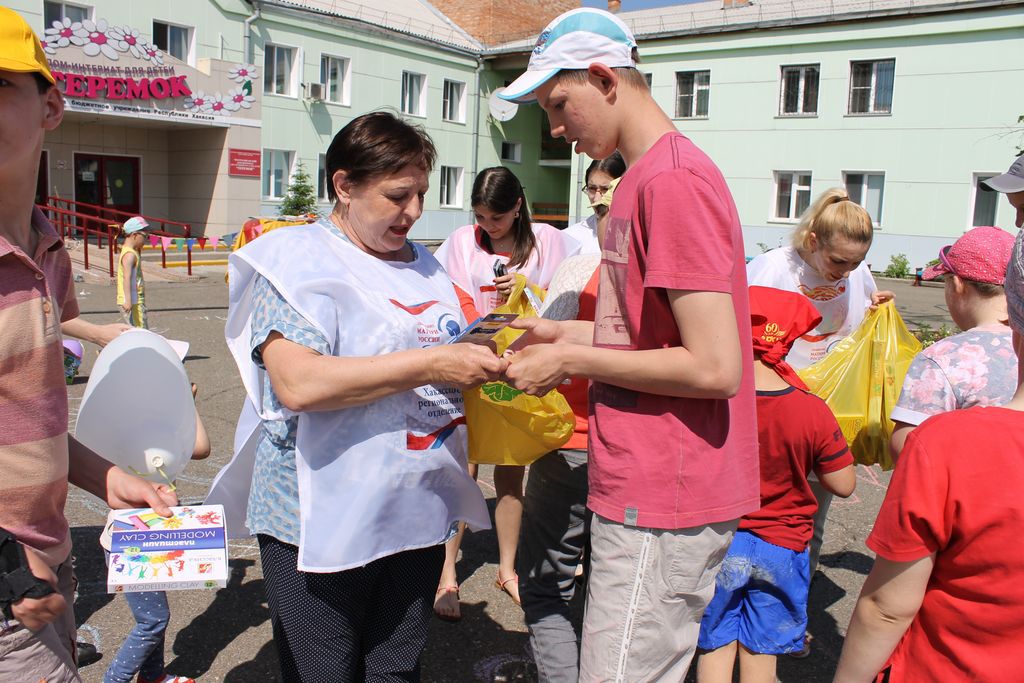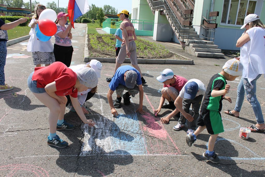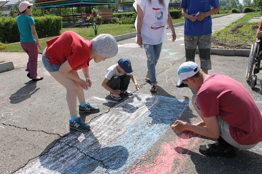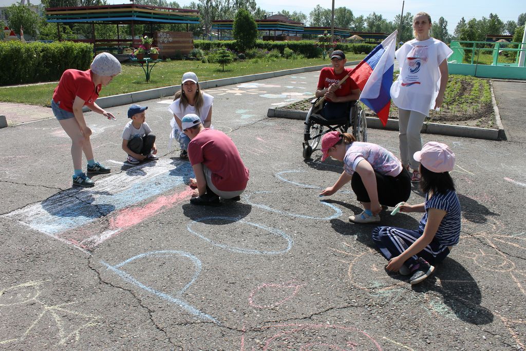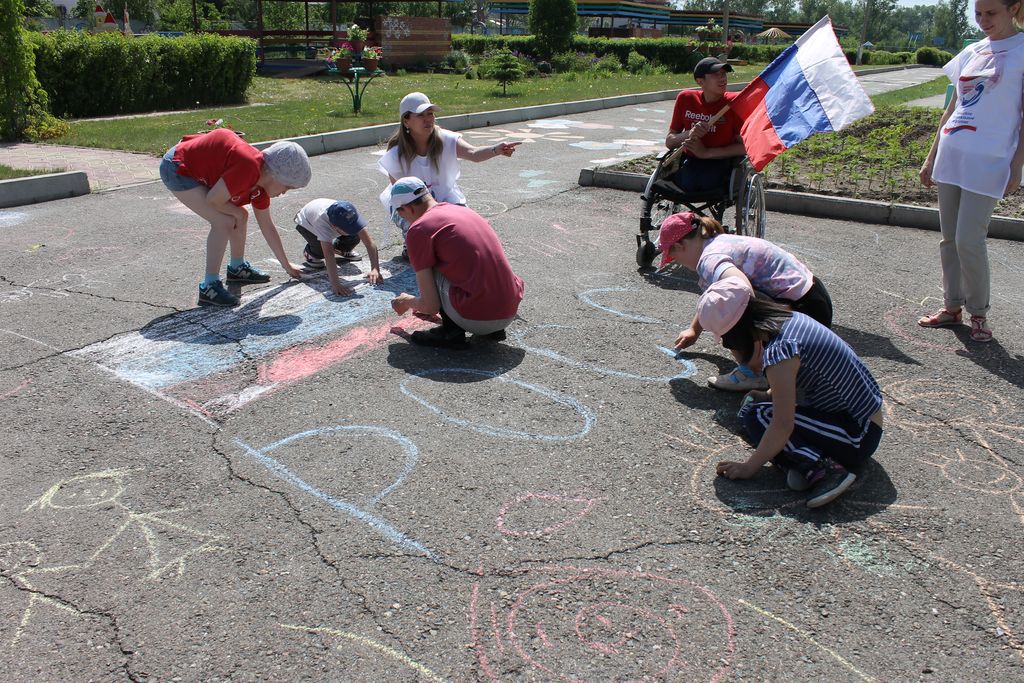 09 июня 2018 12 июня наша страна отмечает важный государственный праздник – День России. В преддверии этого праздника Хакасское региональное отделение Всероссийского общественного движения «Матери России» в доме-интернате для детей «Теремок» провело конкурс рисунков на асфальте «Моя Россия».