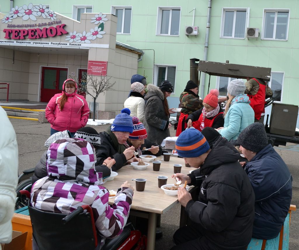 Одним из ярких и увлекательных событий стала спортивная патриотическая игра «Зарница», в которой приняли участие воспитанники и педагоги учреждения. Дети с большим удовольствием участвовали в различных эстафетах и даже увлекательно соревновались с взрослыми в боччу. Бочча - это адаптированная игра для людей с ограниченными физическими возможностями, которая с 1984 года является параолимпийским видом спорта. В этот день на центральной площадке учреждения традиционно развернулась военно-полевая кухня от АПК «МаВР», где ребят угостили настоящей солдатской кашей с тушенкой и горячим чаем.