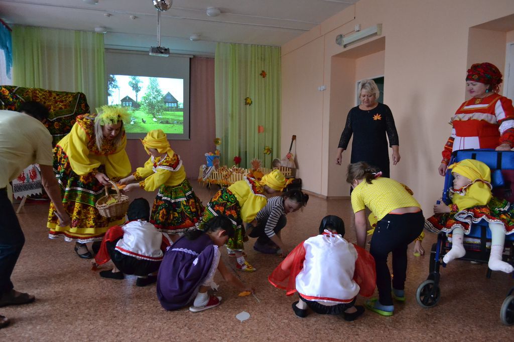 Веселая музыка и забавные игры не давали скучать никому, а ребята смогли и спеть, и потанцевать, и рассказать стихи. В заключении праздника педагогическим коллективом при участии детей была представлена осенняя музыкальная сказка «Жили у бабуси». В сюжет сказки прекрасно вписался танец студии инклюзивного танца «Изенес», а также песня маленькой Татьяны, постоянной участницы городского фестиваля творчества людей с ограниченными возможностями здоровья.