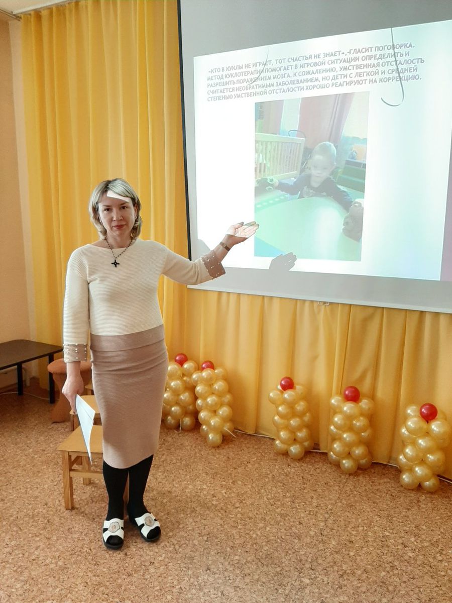 - Толстихина С.В. и Мельченко О.М., показали презентацию по теме: «Технология куклотерапии как эффективная практика социализации детей с УО (интеллектуальными нарушениями)»;