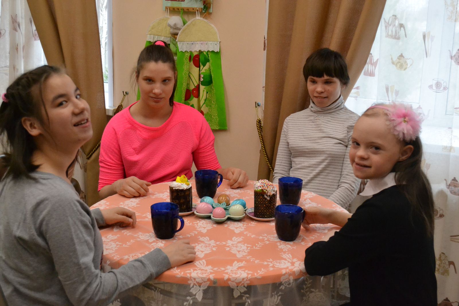 Для детей и подростков с двигательными нарушениями здесь имеется специализированное оборудование (поручни, туалетные системы), для выполнения бытовых операций приобретены адаптивная посуда и бытовые приборы.