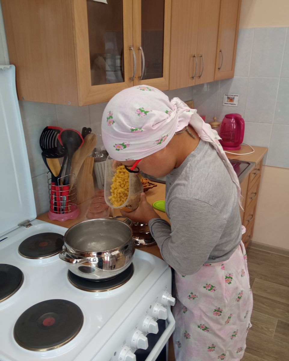 25 августа 2021 В доме-интернате для детей «Теремок», несмотря на закрытый режим работы, продолжается обучение воспитанников в учебной тренировочной квартире.