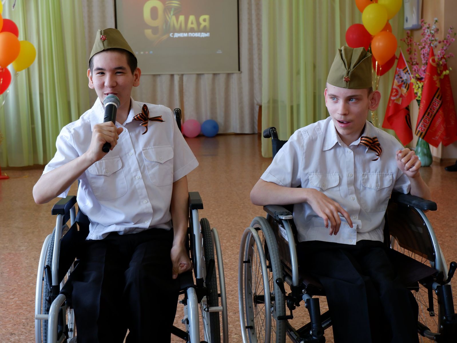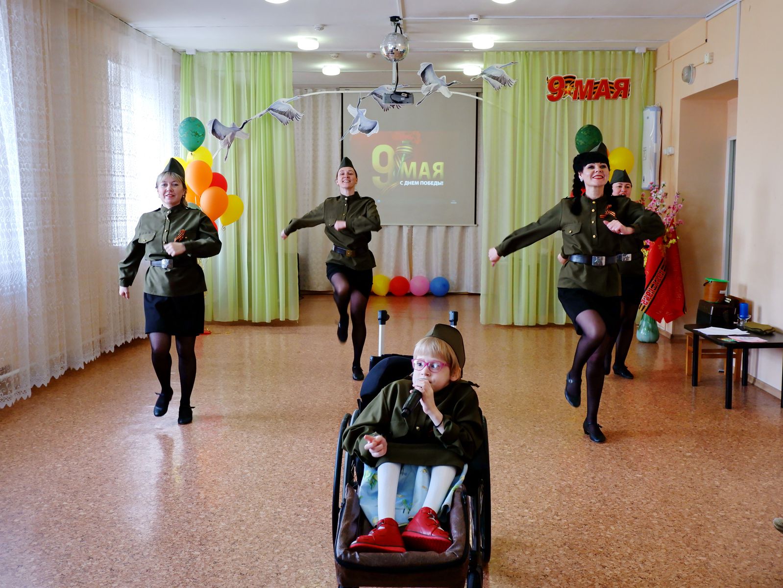05 мая 2022 В преддверии праздника 9 мая в доме-интернате «Теремок» был проведен детский праздник, посвященный Дню Победы. На празднике дети, с чувством особой благодарности читали стихи, исполняли песни и частушки военных лет, маршировали строевым шагом. Несмотря на волнение, ребята справились на отлично. А военные песни в исполнении педагогов никого не оставили равнодушными. Использование презентации позволило более ярко воспринять события прошлых военных лет. А самое главное детей, сплотило чувство великой гордости за наших защитников и ветеранов, за мирное небо над головой. Свои чувства дети выразили в рисунках, посвященных дню Победы.