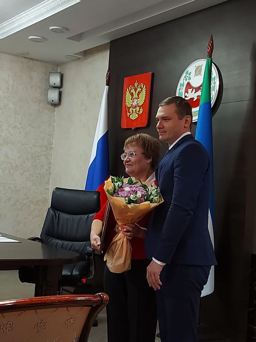 09 июня 2022 8 июня в Правительстве Республики Хакассия прошло награждение лучших сотрудников Министерства Труда и Социальной Защиты РХ в честь Дня Социального Работника. Благодарностью Правительства Республики Хакасия за особые заслуги, большой личный вклад в сфере социальной защиты населения награждена директор дома-интерната «Теремок» Кеберле Н.В. Почетными Грамотами Республики Хакасия за многолетний добросовестный труд и вклад в развитие социальной защиты населения РХ награждены учителя-дефектологи дома-интерната «Теремок» Ветчинкина Г.М и Проскурякова Е.П. Благодарность Министерства Труда и Социальной Защиты РФ за многолетний труд и образцовое выполнение служебных обязанностей получила главная медицинская сестра дома-интерната Арзамасова Л.А.