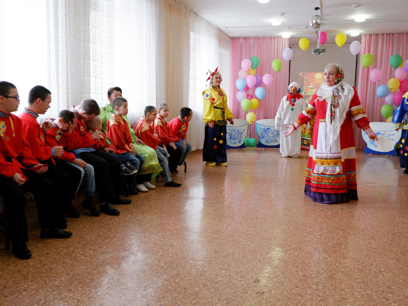 Масленица – самый весёлый, шумный, любимый, народный праздник. Все дети знают про масленицу, про блины, которые нужно есть и про чучело, которое нужно сжигать. Но знать это одно, а увидеть, а ещё лучше поучаствовать в этом совсем другое дело. Педагоги дома – интерната устроили для детей по – настоящему яркое зрелище с веселыми песнями и частушками, с традиционно русскими забавами и играми: дети соревновались в ловкости и быстроте, силе и выносливости. С восторгом воспитанники прогоняли Зимушку-зиму и с радостью встречали Красавицу - Весну. Ребятишки очень ждали этого праздника, готовились к нему: разучивали хороводы, частушки, песни и стихи, изучали разные рецепты приготовления блинов