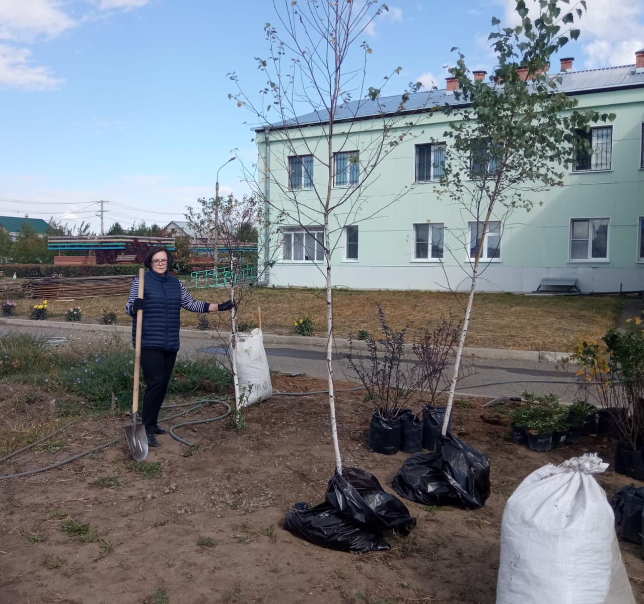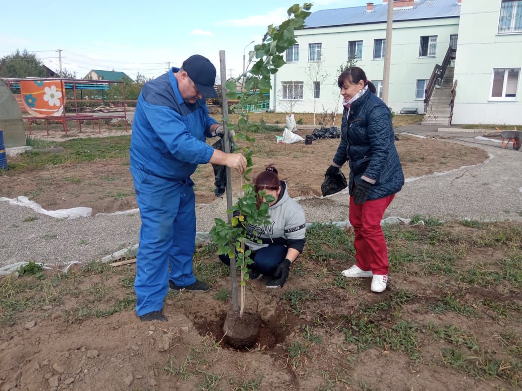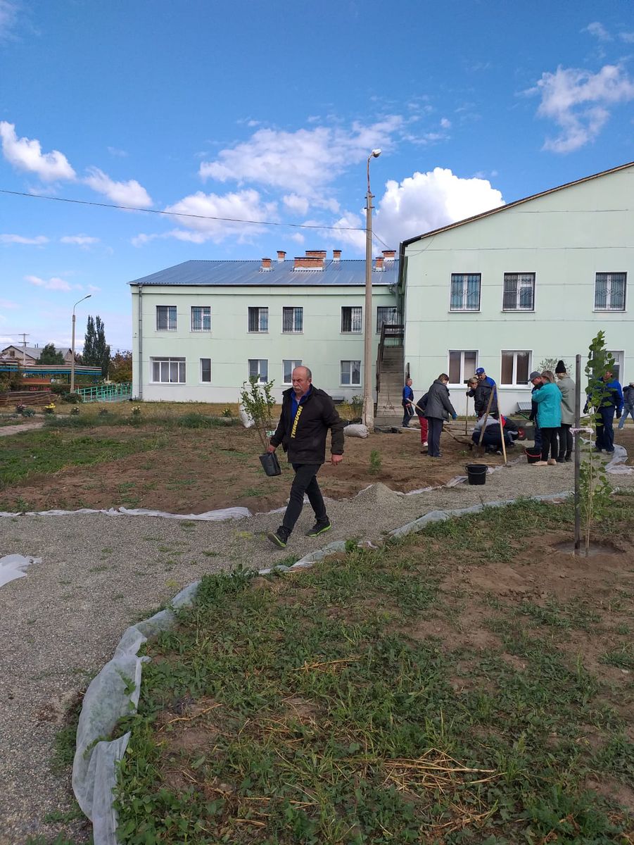 Благодаря усилиям сотрудников, были высажены первые саженцы туи, можжевельника, чубушника, кизильника блестящего, березы и барбариса цветного. В дальнейшем планируется установка модульных зон.