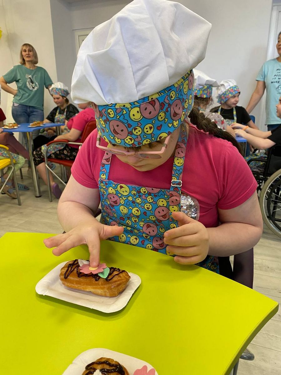 02 апреля 2024 Дом –интернат «Теремок» посетили кондитеры кафе-кондитерской «Малинники» с выездным интересным кулинарным мастер-классом по украшению пирожных-эклеров. Эклеры — популярный, яркий и красивый десерт, который обожают дети и взрослые. Украшение эклеров — особое искусство, секретами которого поделились с нашими воспитанниками кондитеры «Малинников». Они принесли с собой готовые свежие заготовки, кондитерские украшения, специальные инструменты, фартуки и колпаки.
