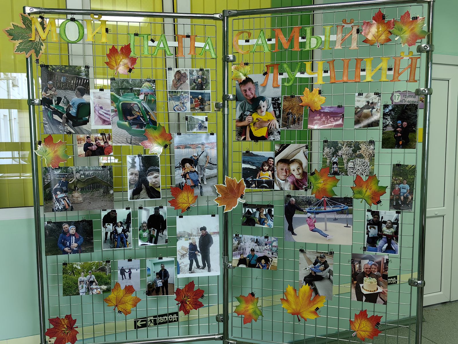 Совместно с родителями и детьми была оформлена фотовыставка «Мой папа - самый лучший», где сотрудники и гости учреждения смогут увидеть пап воспитанников отделения полустационарного обслуживания в работе, на досуге, в семейном кругу.