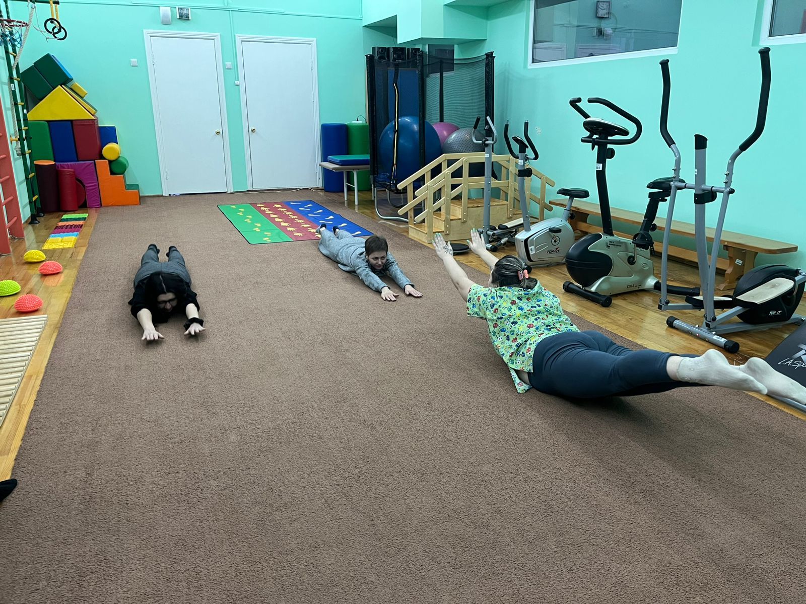 Родители вместе с инструкторами выполнили ряд упражнений: «Лодочка», «Брёвнышко», «Велосипед» и другие. Так же была проведена дыхательная гимнастика с помощью дыхательного тренажера и карточек. Применение в домашних условиях адаптивной физической культуры будет способствовать сохранению и укреплению здоровья детей с ТМНР и гармонизации детско-родительских отношений.
