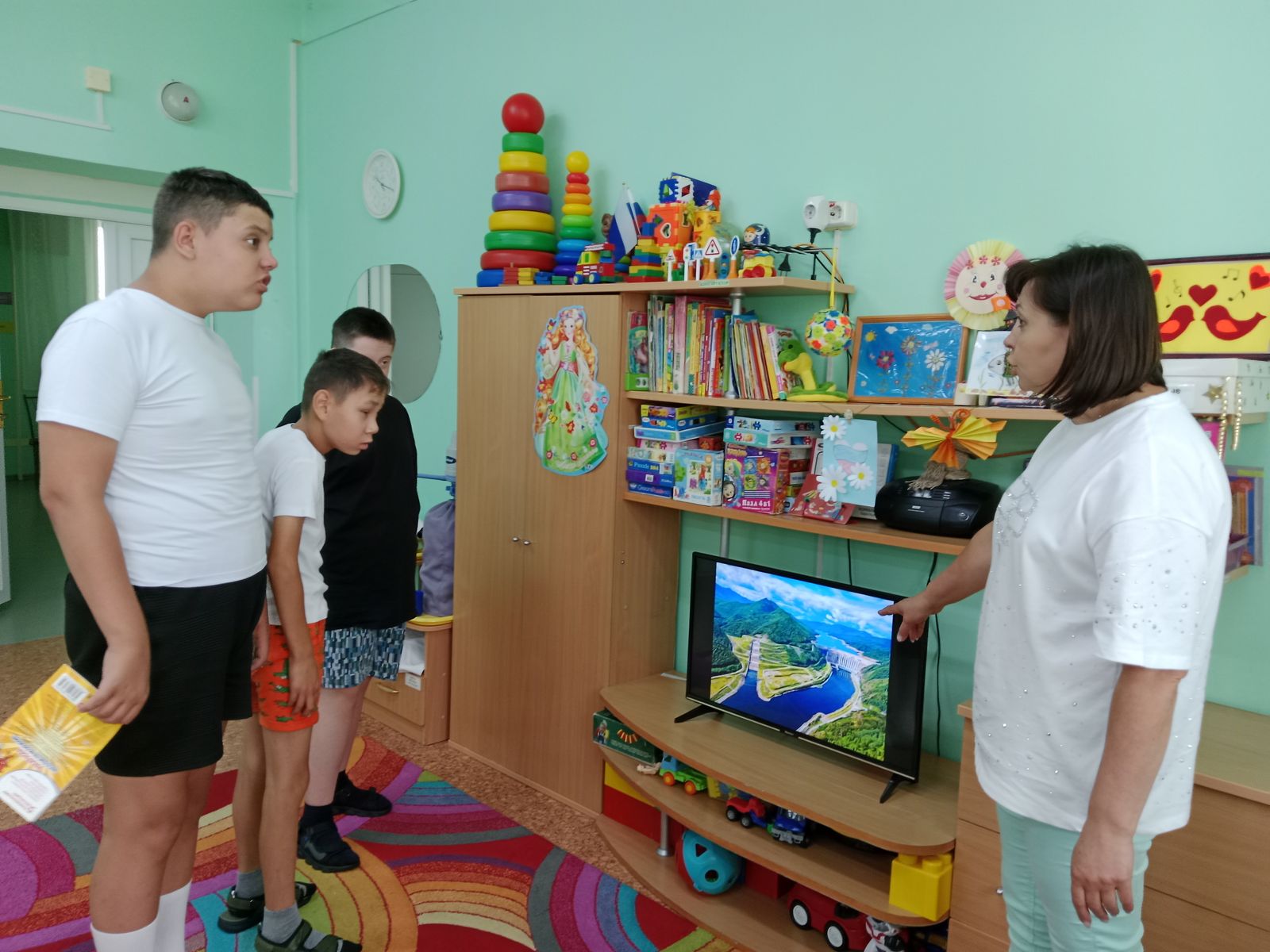 В познавательной беседе воспитанники познакомились с историей Республики Хакасия, с ее флагом, вспомнили его цвета и их значение. Рассмотрели иллюстрации известных туристические мест республики: Саяно-Шушенская ГЭС, Салбыкский курган, Менгиры, большие оздоровительные озера Шира, Тус.