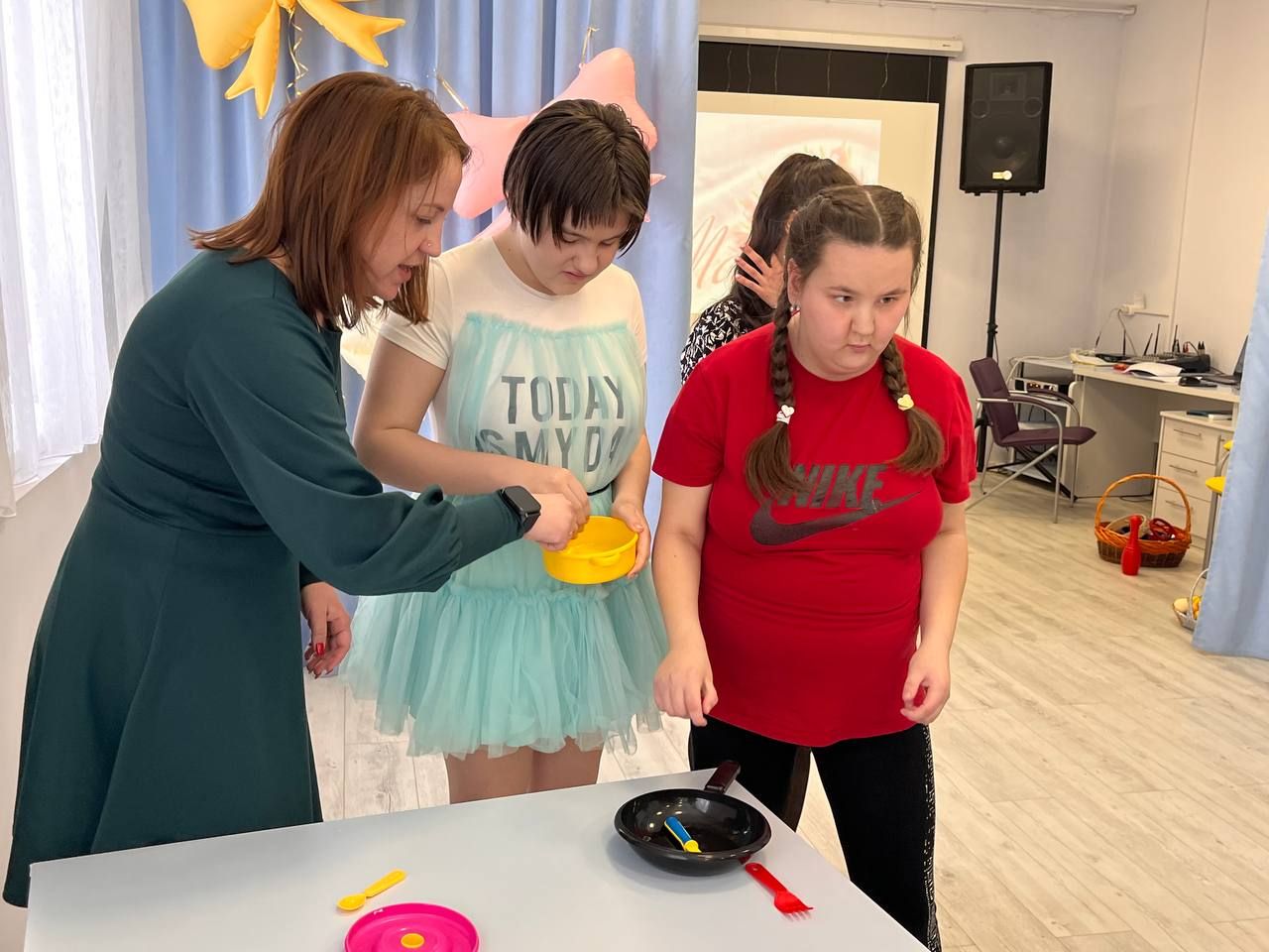 07 марта 2025 Накануне весеннего праздника в отделении полустационарного обслуживания прошло веселое мероприятие для девочек. Девочки участвовали в озорных конкурсах, показали, какие они чудесные рукодельницы и хозяюшки. А мальчики станцевали для девочек танец «поварят». Все вместе танцевали, пели и сыграли весенний оркестр.