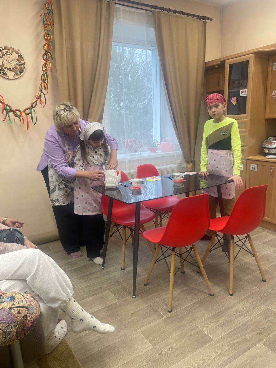 На базе тренировочной квартиры и комнаты социально-бытовой ориентировки социальные педагоги организовали игровые занятия для детей с РАС и их родителей. В ходе занятий педагоги взаимодействовали как с детьми, так и с родителями, показывая примером, как «рука в руку» приучаем детей к навыкам самообслуживания, учим их правилам соблюдения личной гигиены. В дружеской обстановке ребята учились «умываться», «чистить зубы», «мыться», закрепляли знания о предметах личной гигиены, а также «накрывать на стол и угощать гостей».